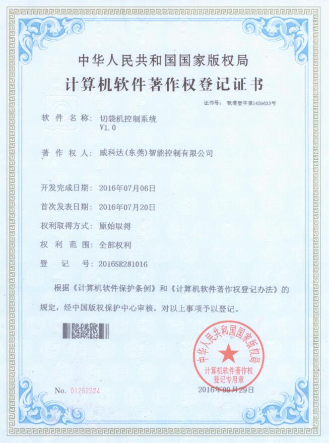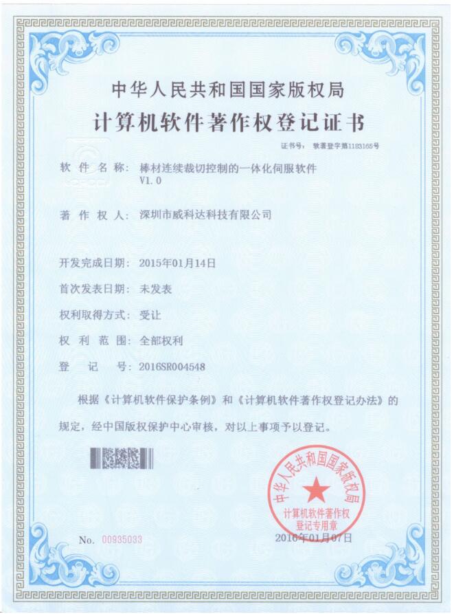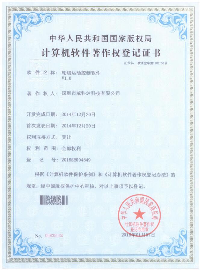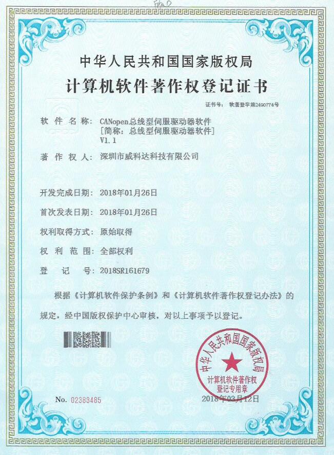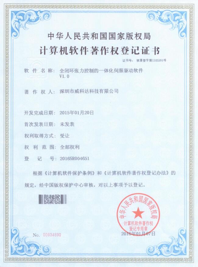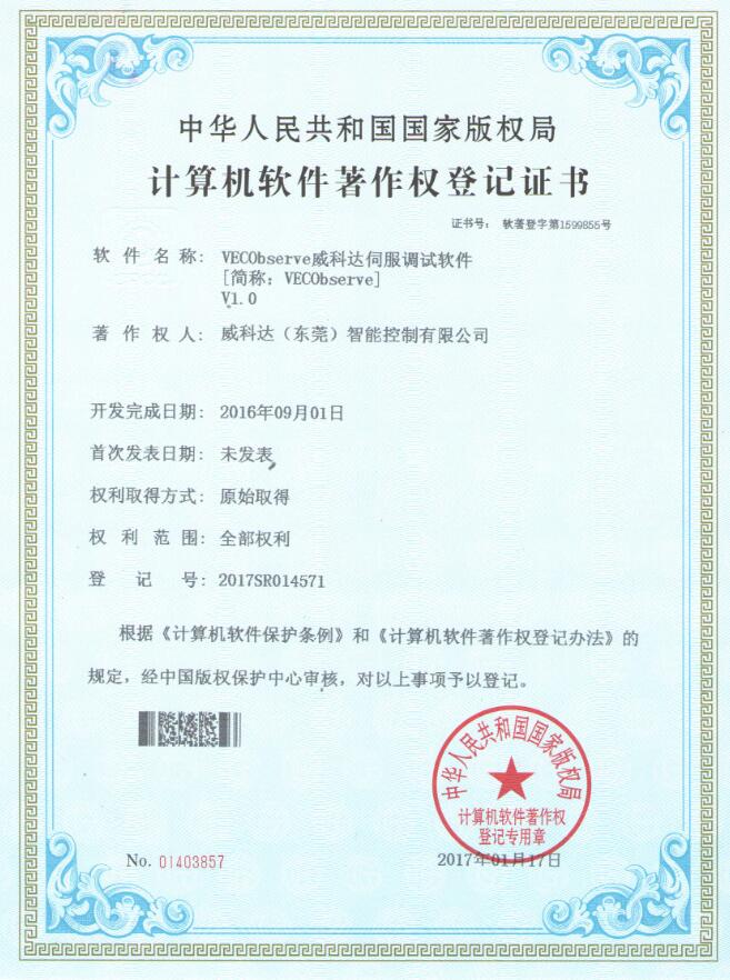 威科達伺服調試軟件證書